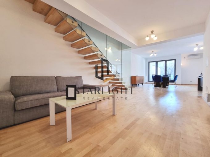 With an interior sized at 77 sqm net area (+ 8 sqm terrace) furnished by professional interior decorators from Lemon Design, this park-view 2-bedroom apartment offered for rent is located on the 10th floor of a 21-storey residential tower inside ONE Mircea Eliade Condominium.